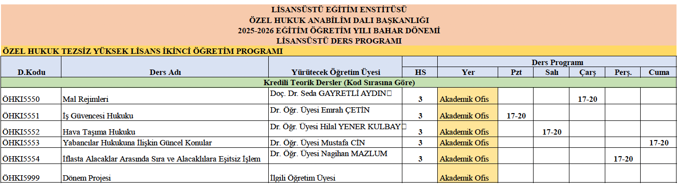 - Medeni Usul Ve İcra İflas Hukuku Anabilim Dalı
