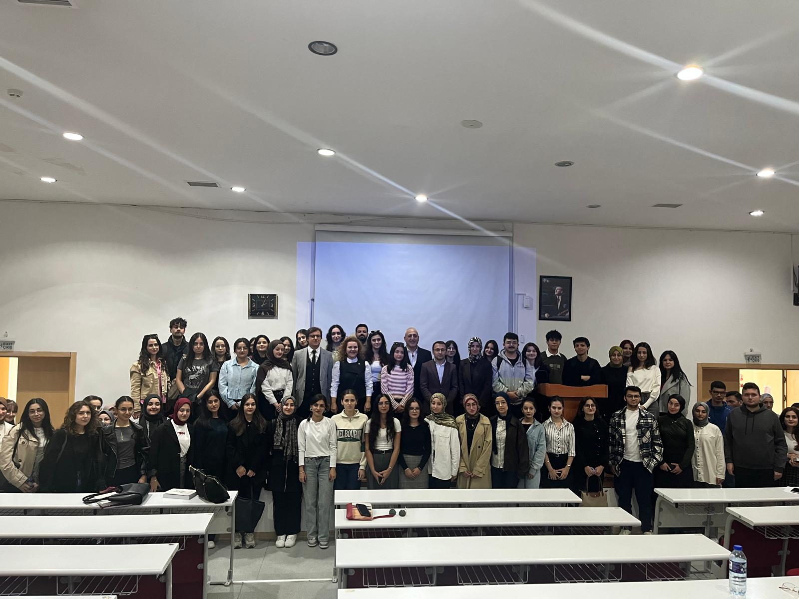 Öğrencilerimiz etkinlikte kendini tanıma, hedef belirleme, etkili iletişim ve profesyonel hayatta fark yaratma üzerine değerli bilgiler edindiler. Sayın Kazaz, kariyer yolculuğundan örneklerle bireysel potansiyelin keşfi ve sürekli gelişimin önemine dikkat çekti. Etkinlik, öğrencilerimize hem kişisel hem de mesleki anlamda ilham veren bir deneyim sundu.