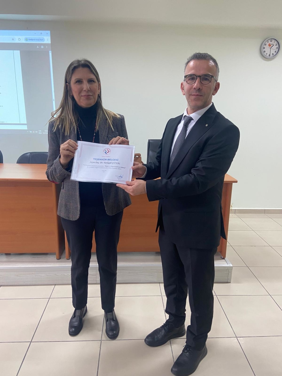 13.11.2025 tarihinde Trabzon Üniversitesi Fatih Eğitim Fakültesi Eğitim Bilimleri Bölümü öğretim üyesi Doç. Dr. Yurdanul GÜNAL tarafından akademik personelimize ölçme ve değerlendirme eğitimi verilmiştir.