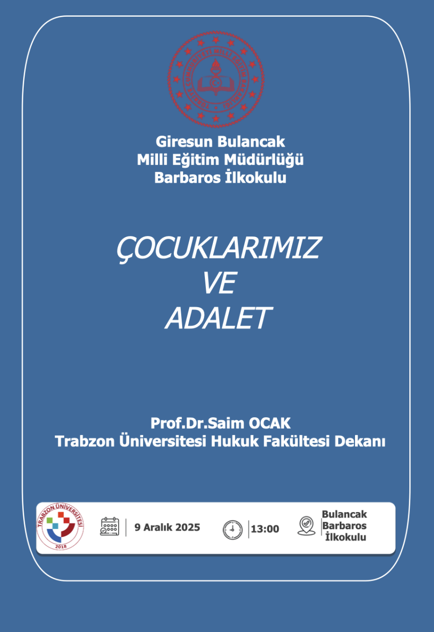 Dekanımız Prof. Dr. Saim OCAK 10 Aralık Dünya İnsan Hakları Günü kapsamında Giresun Bulancak Barbaros İlkolunda gerçekleştirilen etkinlikte "Çocuklarımız ve Adalet" başlıklı konferans vermiştir.