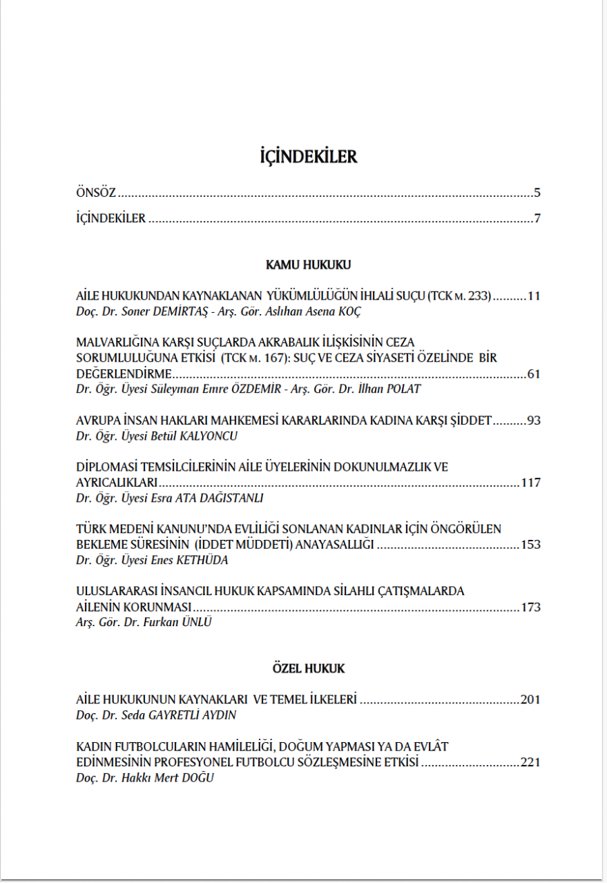 Bilindiği gibi 2025 yılı “Aile Yılı” olarak ilan edilmiş bulunmaktadır. Aile yılının ilan edilmesi hukukun güncel sorunlarına odaklanmak ve aynı zamanda toplumumuzun geleceğini şekillendiren temel değerlerin yeniden incelenmesi için de önemli bir fırsat sunmaktadır. Aile, sosyal dayanışmanın, değer aktarımının ve toplumsal sürekliliğin merkezinde yer alan bir kurum olarak, hukuki düzenlemelerin hem konusu hem de odağı olmaya devam etmektedir. Bu nedenle, aileyi ve aileye ilişkin hukuki yapıları anlamak, analiz etmek ve geliştirmek, sosyal bilimlerin tüm alanlarının sorumluluğunda olup, hukukçular olarak sorumluluk gereği “Aile ve Hukuk” adlı elinizdeki eserin oluşturulması hedeflenmiştir.